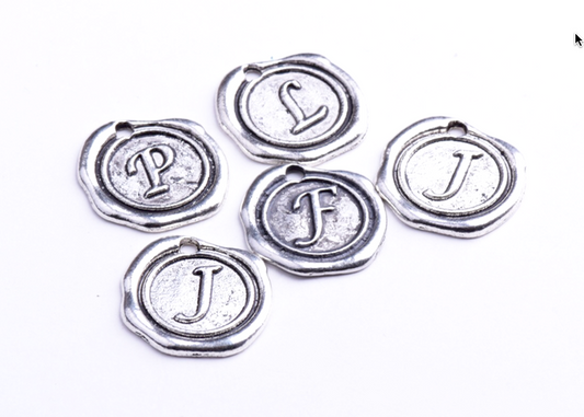 18mm Wax Seal Alphabet Charms, antique silver, pack of 6