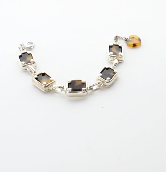 Bracelet Link 20x17mm Vintage Lucite Tortoise and Sliver Link/Connector, ea