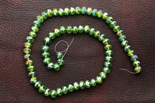 Peridot Green Crystal Beads, Faceted Rondelle Fire-n-Ice, 8mm, 72 beads per strand