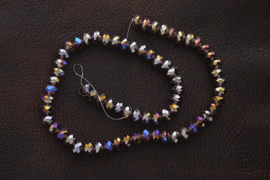 Crystal beads, 8mm Bicone, Sapphire Blue, Crystal AB, & Amethyst Purple, 7 inch strand with 22 beads