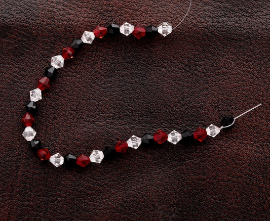 6mm Red, Black, Clear Crystal Faceted Bi-cone Crystal Beads, 6mm, Bead Strand