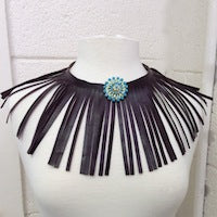 5" Leather Fringe, dark pink, on 1/2"border, sold by ft.