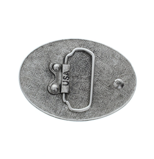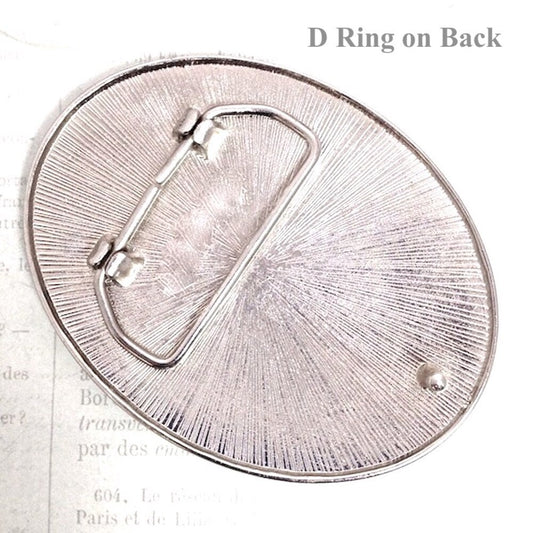 Belt Buckle, Oval, Interchangeable, Antique Silver, 3.5" long, 1.5" D ring, Made in USA, Each