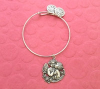 6in Silver Finish Wire Charm Bangle with Ball/catch, ea