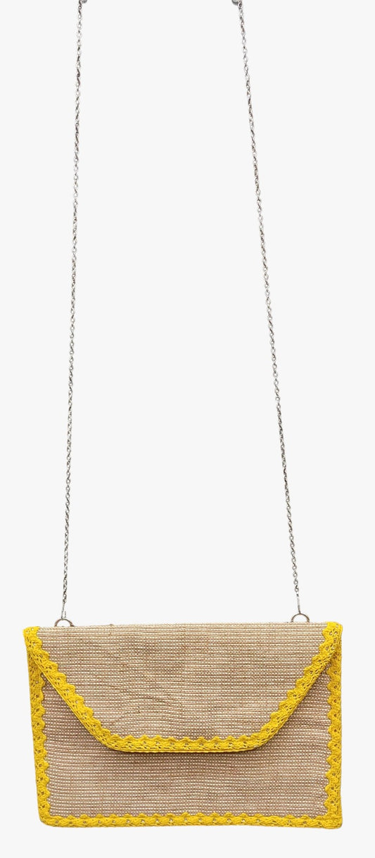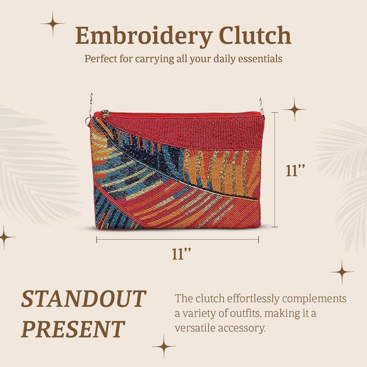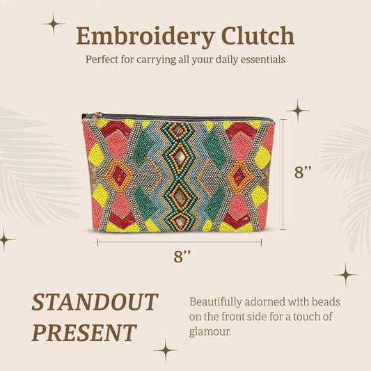 HHH Designs Embroidery Clutch Having Front side Embroidery and Plain Back, Elegant Embroidered Clutch with Front Beading and Crossbody Option