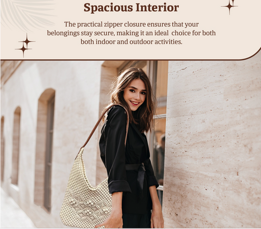 HHH Designs Cotton Macrame Bag with Leather Handle