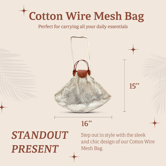 HHH Designs Cotton Wire Mesh Bag with PU Leather Handle and Flap