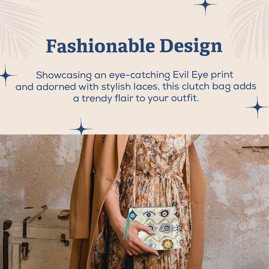 Clutch Bag with Evil Eye Print and Laces for Women and Girls