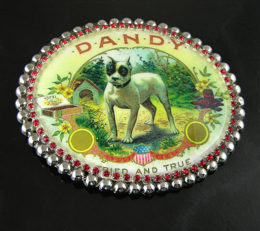 Vintage Cigar Box Art "Dandy the Dog" Buckle and Leather Belt Set