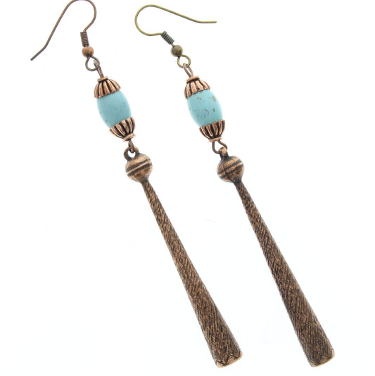 Santa Fe Turquoise Squash Blossom Earrings in gift bag, antique copper or antique silver, handmade in USA, One Pair