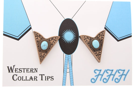 Collar Tip, Western Collar Tip, Antique Copper/turquoise stones (howlite Tq) 1 pair