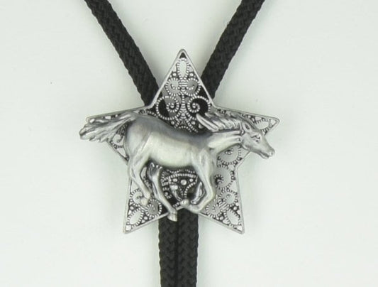 Galloping Horse bolo tie, black 36" cord, made in USA, Each