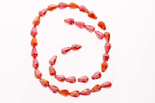 12mm Fire Red Crystal Beads, Faceted Teardrop Shape with AB (aurora borealis) Finish, 34 beads