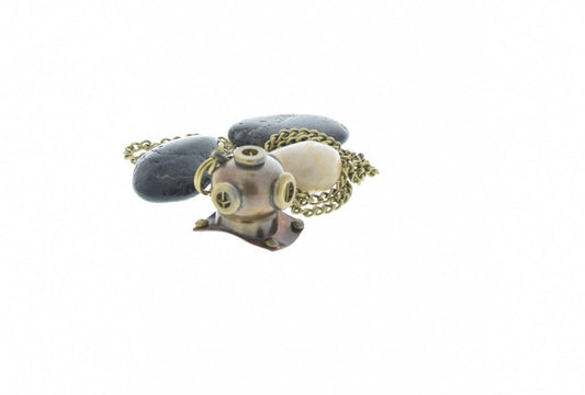 24" Vintage Captain Nemo Diver Helmet Steampunk Pendant Necklace, vintage bronze, P4417AG