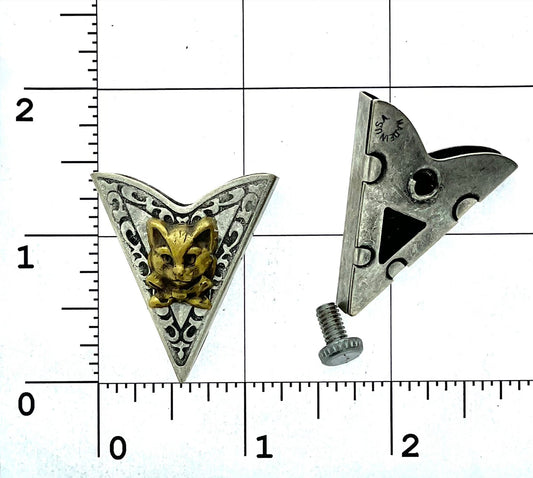 Cat Kitten Collar Tips, antique gold and silver, Made in USA, 1 pair