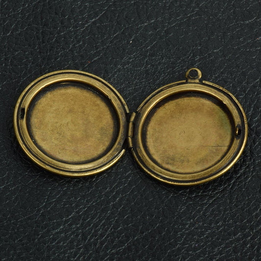 30mm Round Locket for 2 photos, Vintage Gold, Made in USA, pack of 2