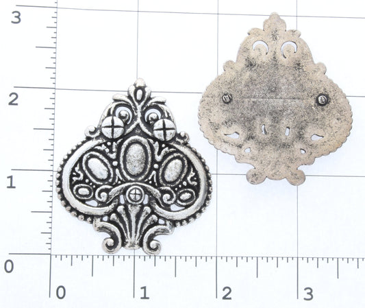 Moorish Midgard Cabochon Parts for Button, Cloak Clasp, Sweater Clip, 58mm flat back, Antique Silver, Pack of 2