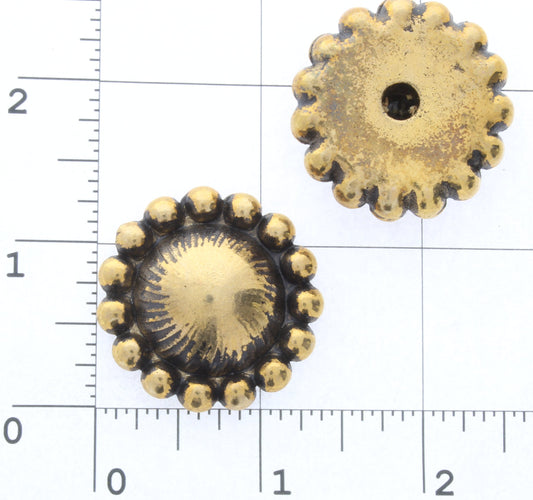 35mm Beaded Edge Round Cabochon Jewelry Parts, for sweater clips, cloak clasps, earrings, Antique Gold, pack of 6