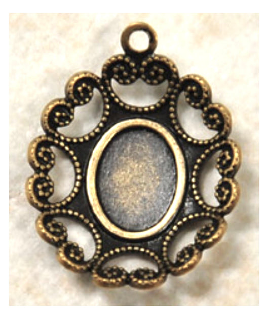 18mm Vintage Filigree Bezel Charm, Antique Gold or Classic Silver, 8mm x 6mm Bezel, pack of 6