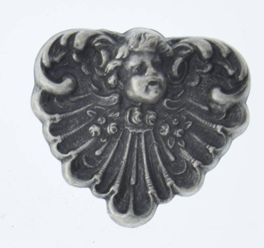 Vintage Victorian Angel Cherub Stamping, 36mm, antique silver or antique gold, concave on back, Made in USA, pack of 2