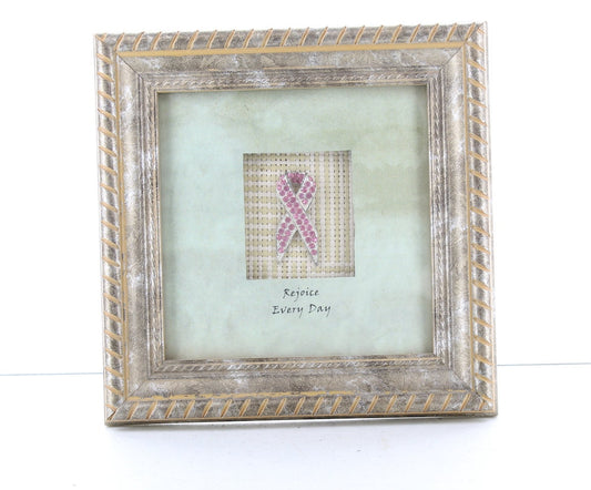 Shadow Box Frame Decor with "Rejoice Every Day" with Pink Crystal Bow, Find the Cure Breast Cancer,7" sq 803285