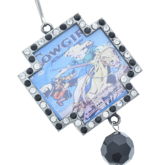 Vintage Cowgirl Art Crystal frame pendant, Multi,Pendant, 48mm, Pack of 3