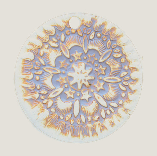 55mm Star Burst Hand Stamped Clay Ceramic Pendant, Cream Brown hand stamp, pack of 2