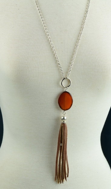 Agate drop Pendant with leather tassel neckalce 30 inches