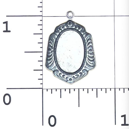 22mm Bridgerton Victorian Frame Bezel Charm for earrings, pendants, 14x10mm oval bezel for stone, classic silver, Made in USA, pack of 6