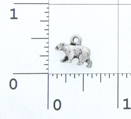 20mm Walking Brown Black Bear Charm, 3D, Antique Silver, Made in USA, pack of 6