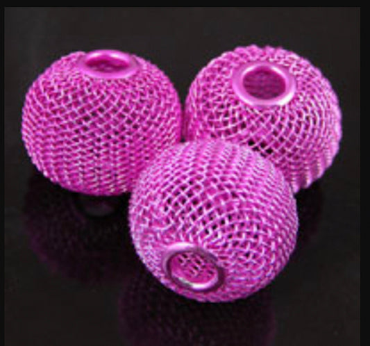 Wire Mesh Beads for Macrame' and jewelry, Red, Hot Pink or Silver in 16mm, 20mm or 25mm Size, with 6mm hole, pack of 5
