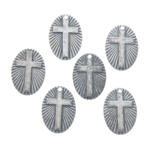 Sunburst Cross Charm, Classic Silver, pack of 6