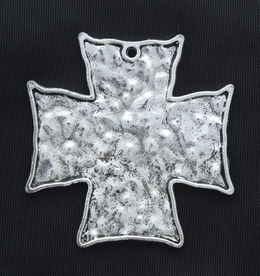 46mm Hammered Dimpled Cross Charm, Classic Silver, Pack of 6