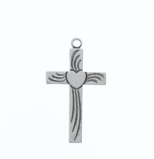 Classic Silver Heart Cross Charm, pk/6