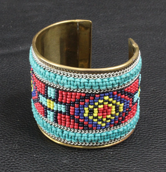 American Indian Beaded Cuff Bracelet, turquoise and red, ea