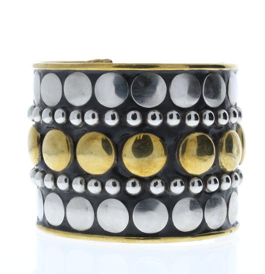Circle Grid Bracelet Cuff, Antique Silver/Brass Circles of Various Sizes, ea
