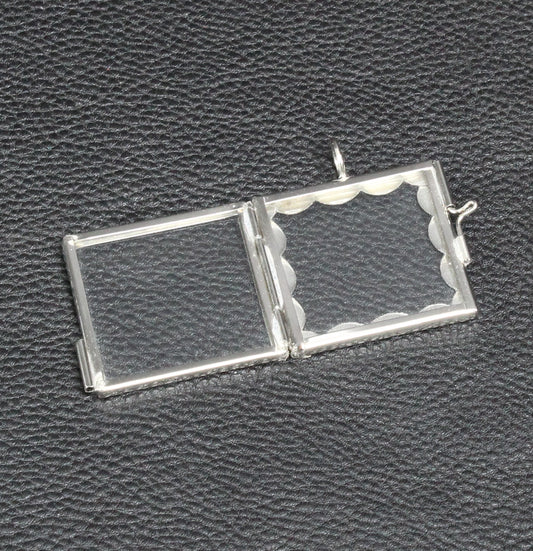 1.5 inch Scalloped Square, Silver, Our Glass Frame Locket Pendants, PKG/2