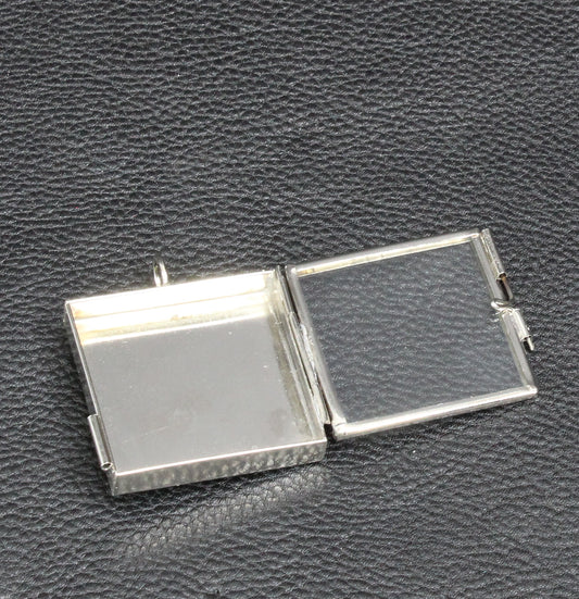 Shadow Box Locket Pendant w/Glass Frame Hinged Door, 2 ea
