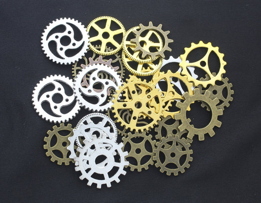 Steampunk Watch Parts Gears CogWheel Charm Assortment, Antique Gold & Silver Mix, Pack of 24