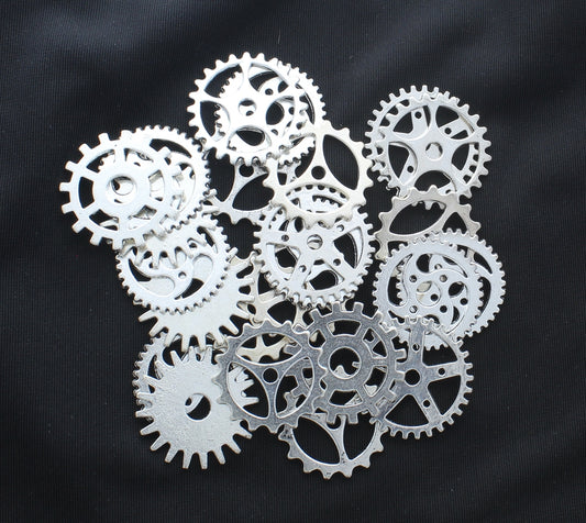 19mm-25mm Steampunk Watch Parts Gears CogWheel Charm Assortment, Mixed size, Antique Silver, Pack of 24