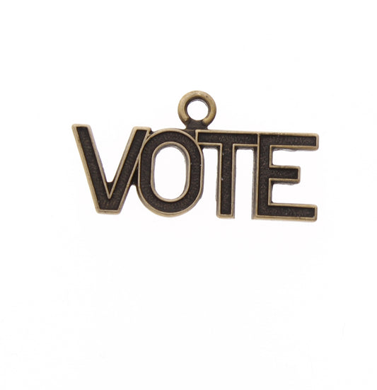 Vote Charm brass , made in USA with ring antique gold, 6 each