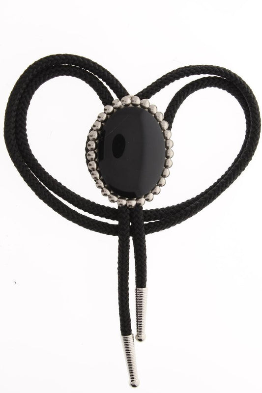40mm Bolo Tie with Faux Turquoise or Onyx, set in Antique Silver with Matching Tips, Made in USA, Black or Red Cord, Each