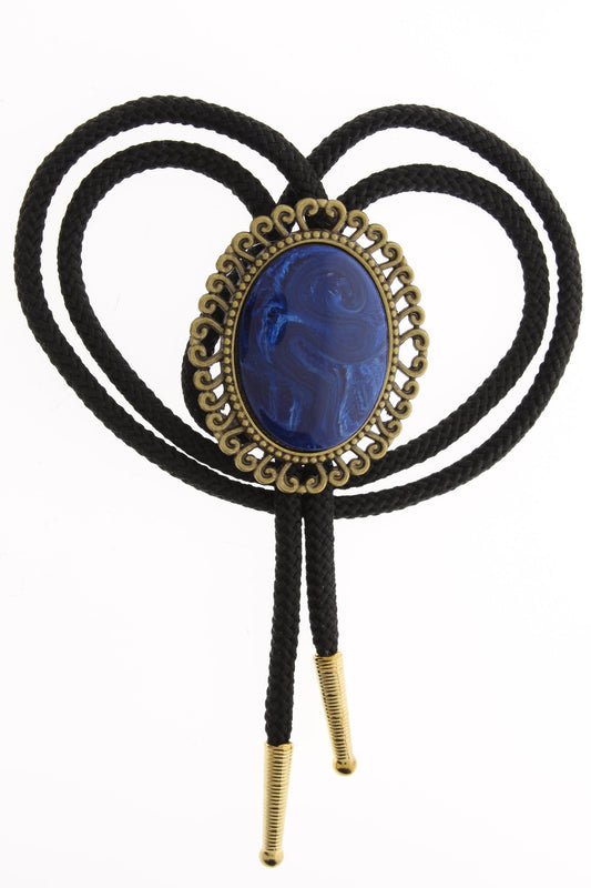 40mm Lapis Lazuli Blue Bolo Tie OR Turquoise Bolo set in Vintage Gold with Matching Tips, Made in USA, Black or Jute Cord, Each