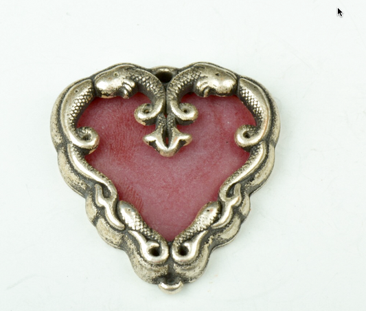 31x27mm Vintage Lucite Resin Heart w/Roses(flatback), pk/4