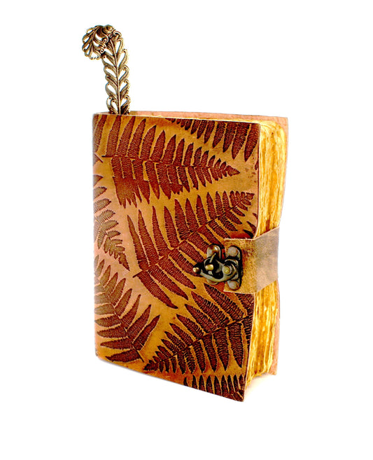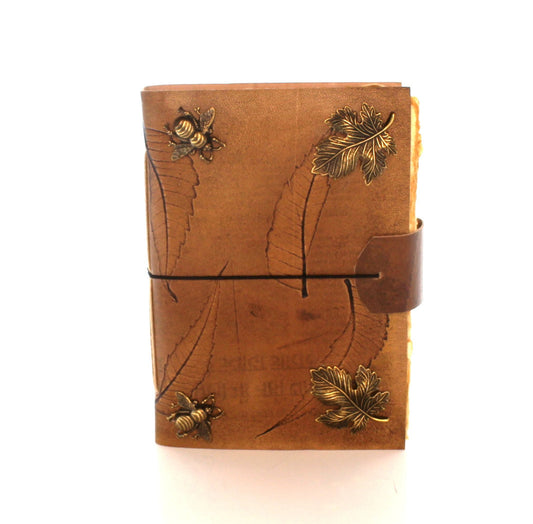Leaf Embossed Leather Journal with bee & leaf embellishments