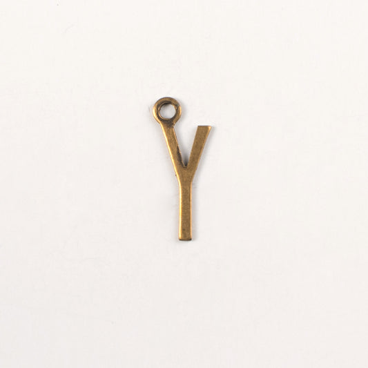 15x6mm Y Letter Charm, Vintage Brass Metal Stamping, pk/6