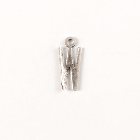 15x6mm W Letter Charm, Classic Silver Metal Stamping, pk/6