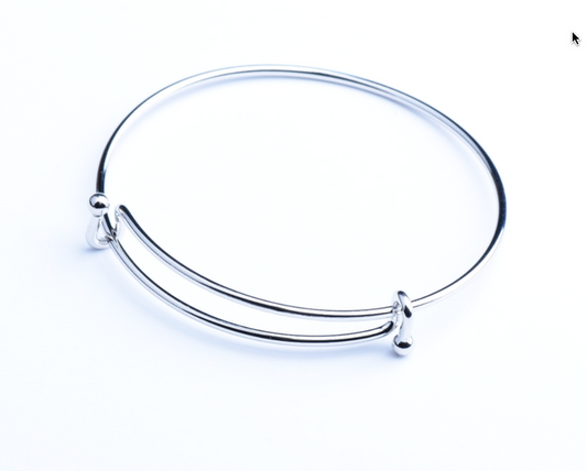 Wire Charm Bangle Bracelet, Silver Finish, double ball U clasp, each