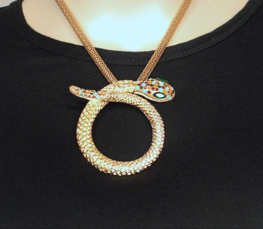 84mm x 63mm Gilded Serpent Necklace, 18.5" Gold Chain, made in USA, each