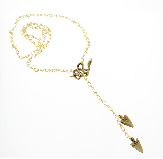 Golden Serpent Arrowhead Y-Necklace, 36" gold chain, made in USA, each